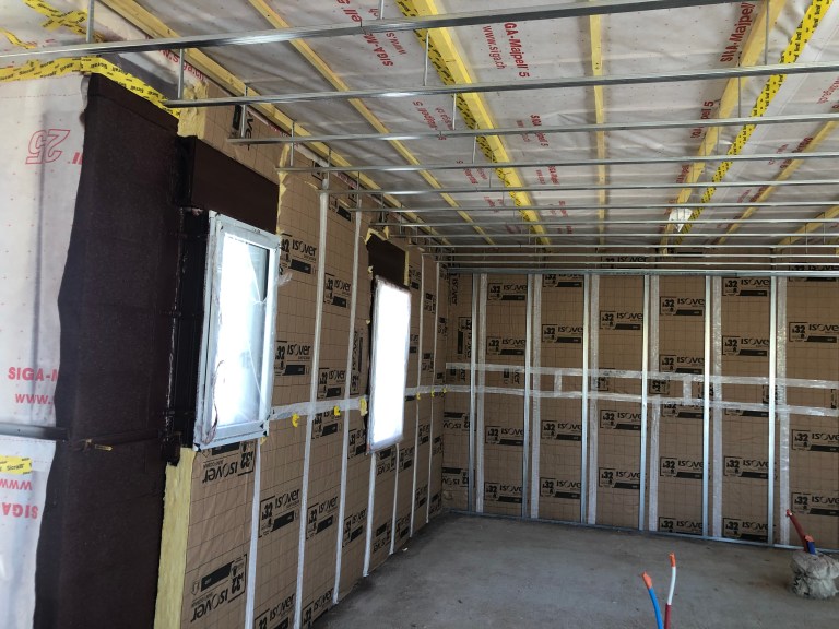 Eric Poiron Plâtrier a réalisé l’enduit étanche à l’air et l’isolation intérieure de la maison.